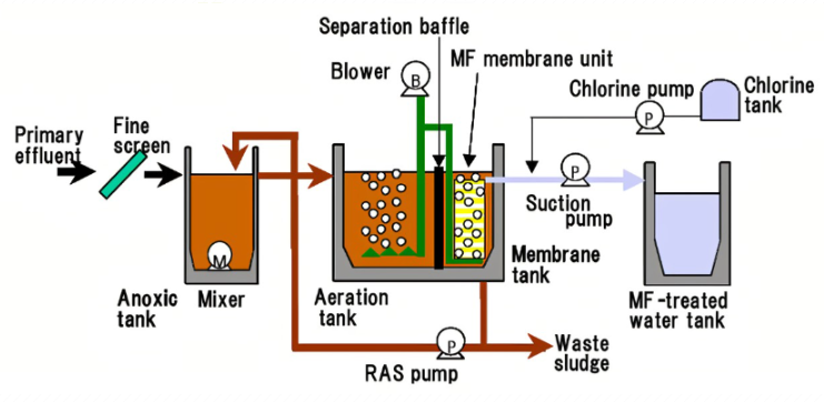 (4)反應池:包括微生物菌落,膜組件,水收集係統,排水係統和通氣係統。