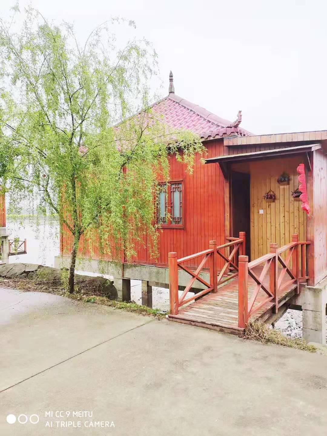 11點左右到達目的地,首先映入眼簾的是一排排民宿,木門紅瓦,依湖而居,讓遊客找尋到久違的歸屬感。民宿的另一邊是大片大片的果樹林,桃樹,櫻桃,橘樹,葡萄,草莓,應有盡有,桃花挨挨擠擠,一簇一簇的開滿枝頭,散燒烤場所,若是周末成群結伴來此,燒烤啤酒,人間幸事啊!